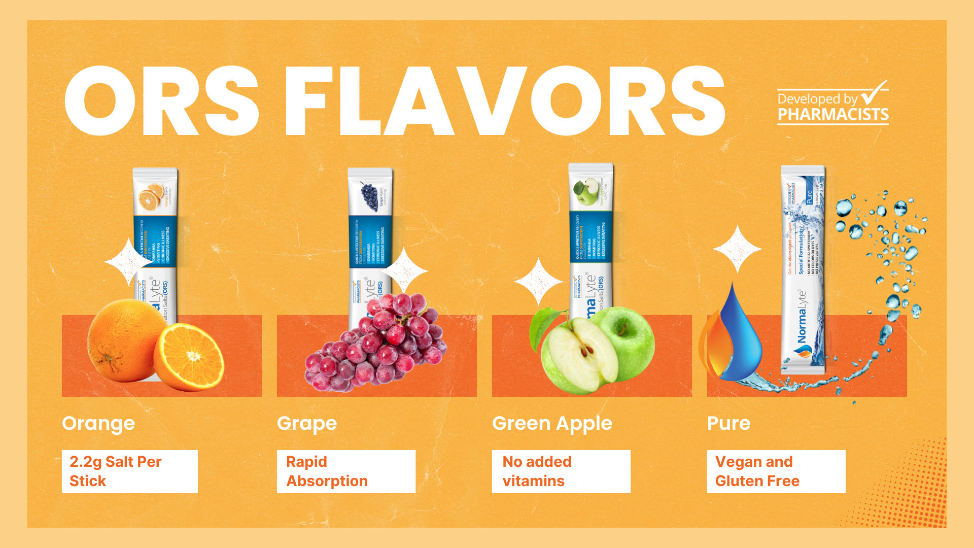 ORS STICKS: The sticks are medical grade electrolytes called oral rehydration salts (ORS). ORS is something hospitals and doctors all around the world use to manage dehydration. ORS allows your body to hold onto hydration more effectively than water alone, and it usually starts working within the first 5 minutes of drinking! If you have an FSA/HSA, you can use it to purchase the sticks.