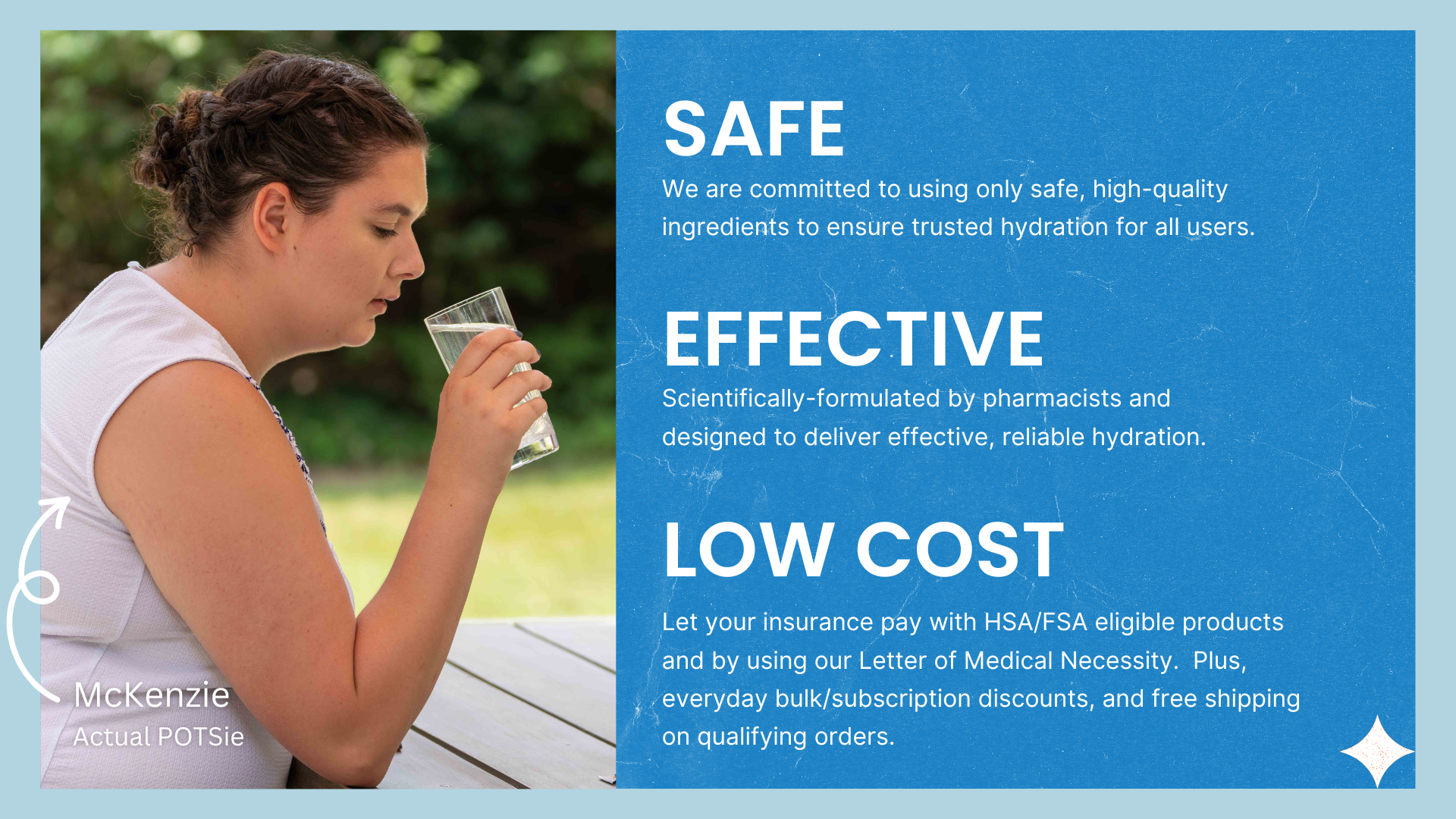 Plus, our Pure formulations (both sticks and capsules) were specifically made for those with Dysautonomia. We set out to make the safest and most effective product on the market while ensuring it's not cost prohibitive.